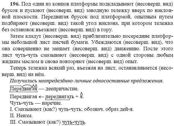 Решения домашних заданий по русскому языку 8 класс Тростенцова Л.А. 196 упражнение