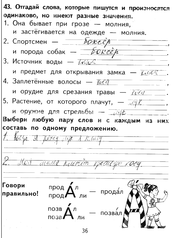 Решения домашних заданий по русскому языку 2 класс Байкова 36 упражнение рабочая тетрадь