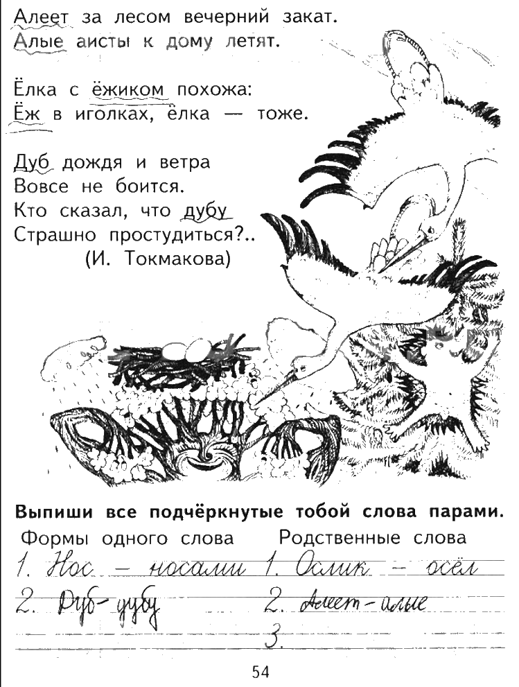 Решения домашних заданий по русскому языку 2 класс Байкова 54 упражнение рабочая тетрадь