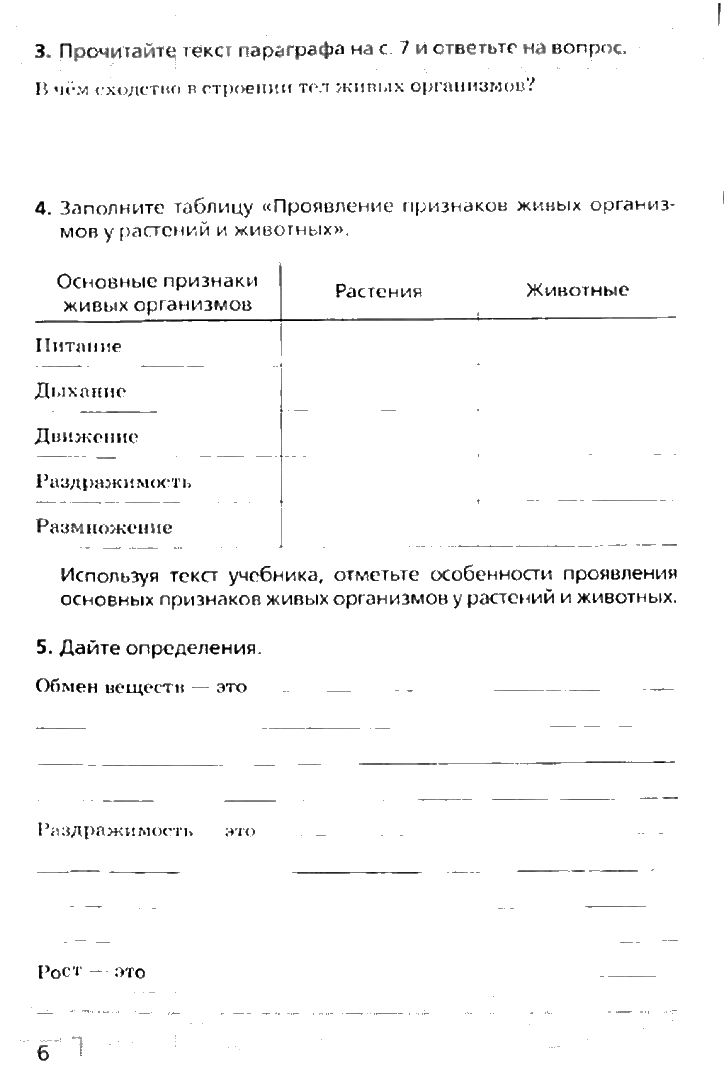 Решения домашних заданий по природоведению 5 класс Сонин, Плешаков 6 упражнение рабочая тетрадь