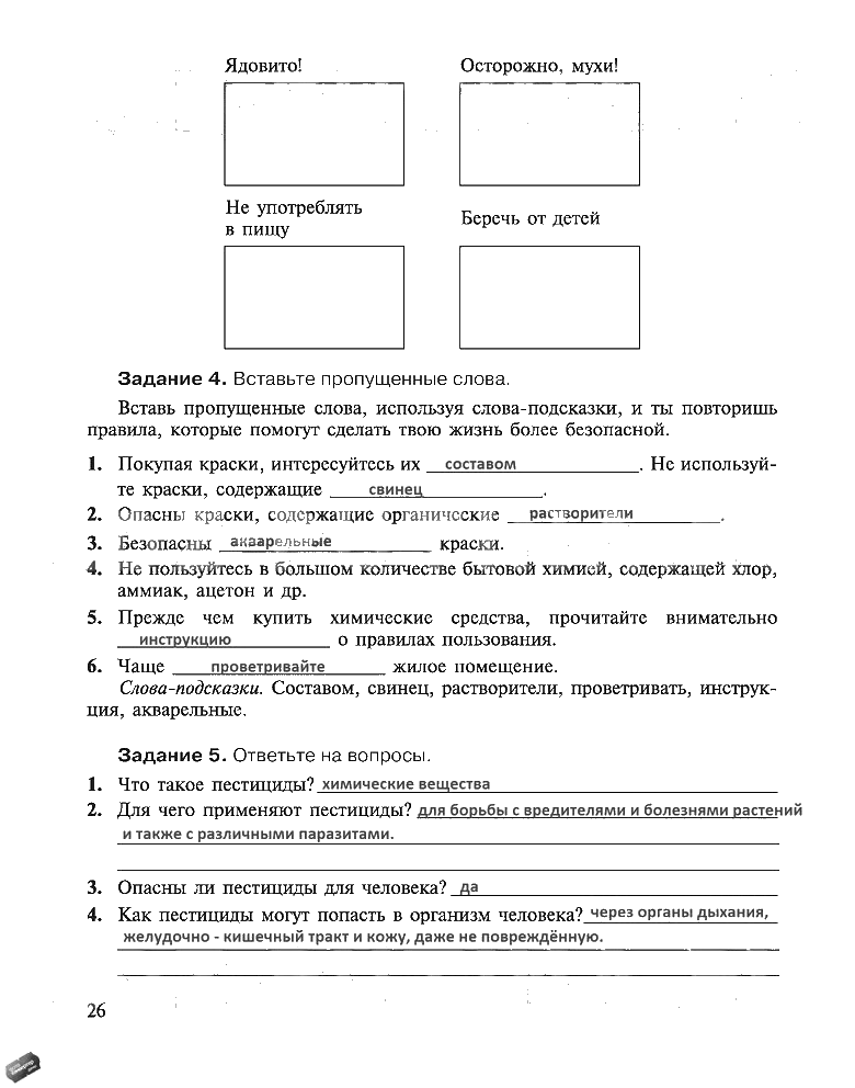 Решения домашних заданий по ОБЖ 5 класс Воробьёва Ю. Л. 26 упражнение рабочая тетрадь