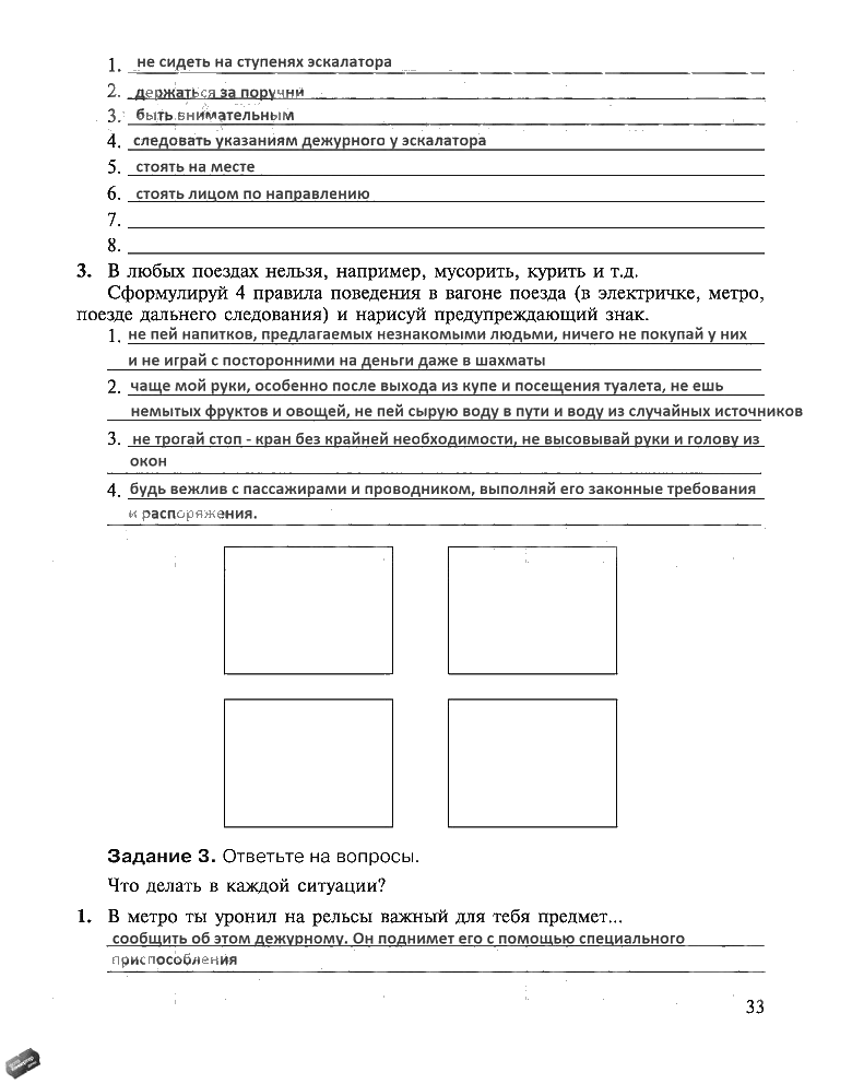 Решения домашних заданий по ОБЖ 5 класс Воробьёва Ю. Л. 33 упражнение рабочая тетрадь