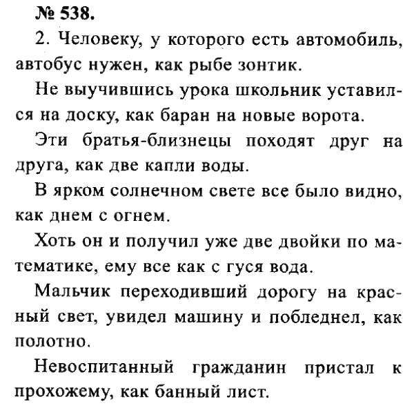 Решения домашних заданий по русскому языку 8 класс Львова С.И., Львов В.В. 538 упражнение