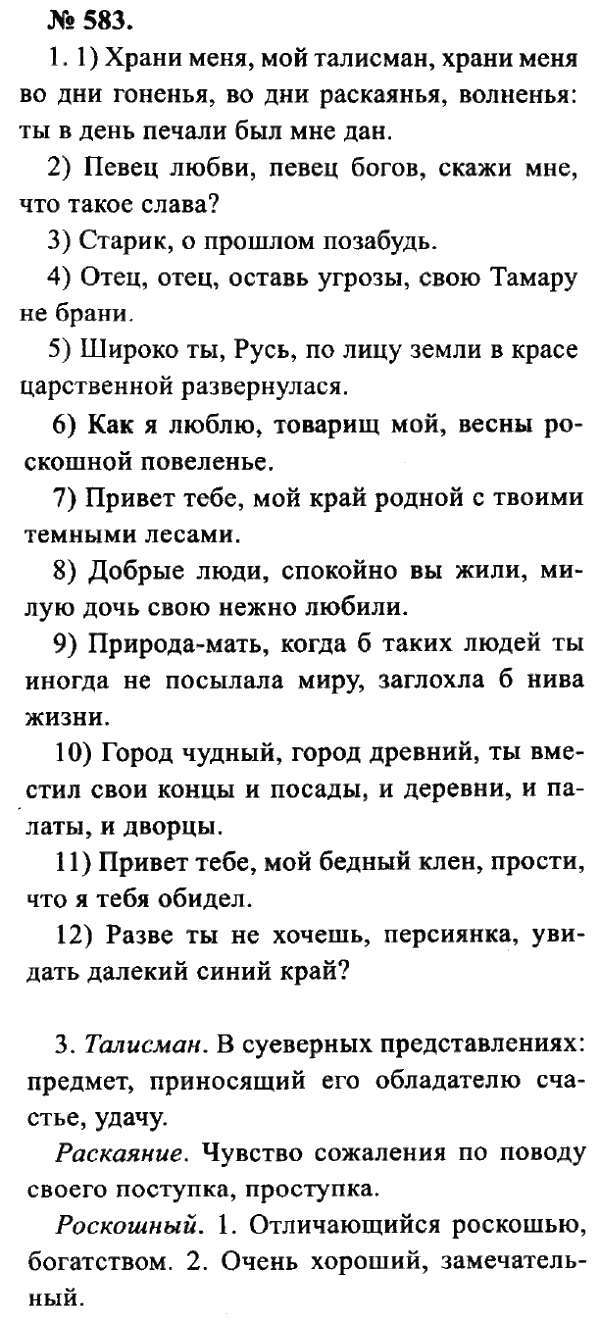 Решения домашних заданий по русскому языку 8 класс Львова С.И., Львов В.В. 583 упражнение