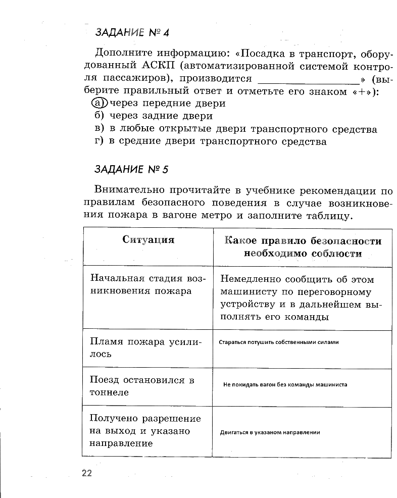 Решения домашних заданий по ОБЖ 5 класс Смирнов, Хренников, Маслов 22 упражнение рабочая тетрадь