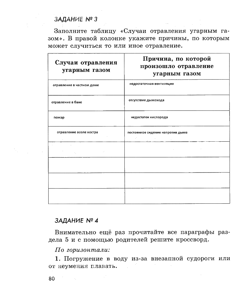 Решения домашних заданий по ОБЖ 5 класс Смирнов, Хренников, Маслов 80 упражнение рабочая тетрадь