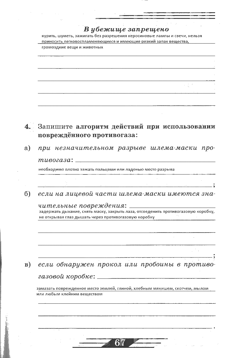 Решения домашних заданий по ОБЖ 6 класс Латчук, Миронов 67 упражнение