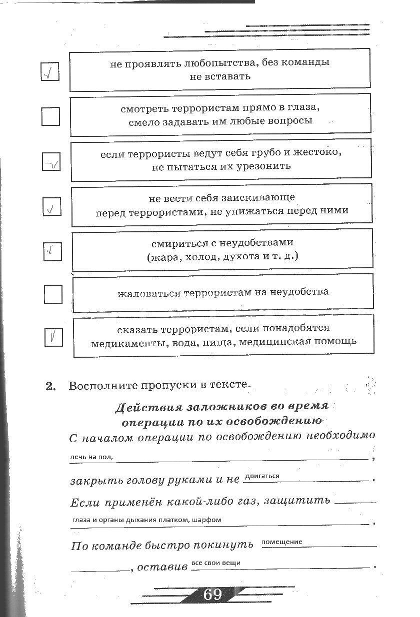 Решения домашних заданий по ОБЖ 6 класс Латчук, Миронов 69 упражнение