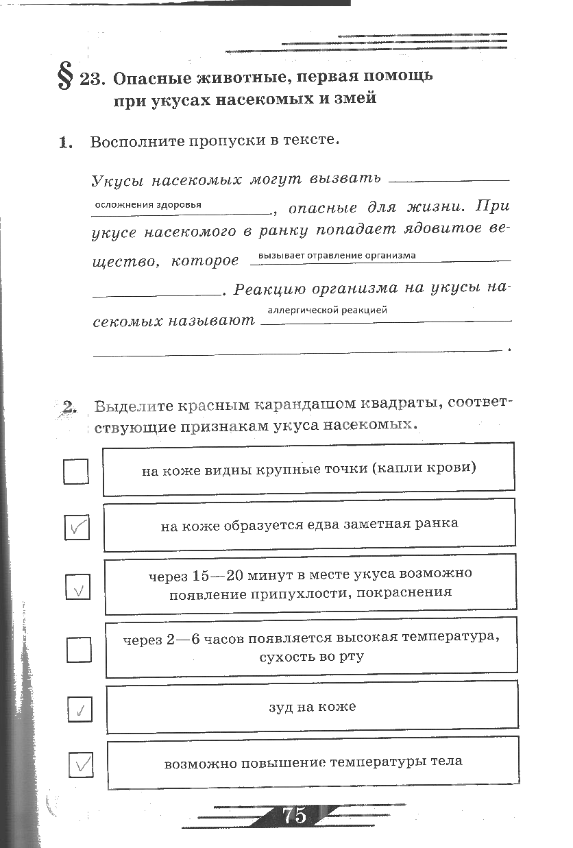 Решения домашних заданий по ОБЖ 6 класс Латчук, Миронов 75 упражнение