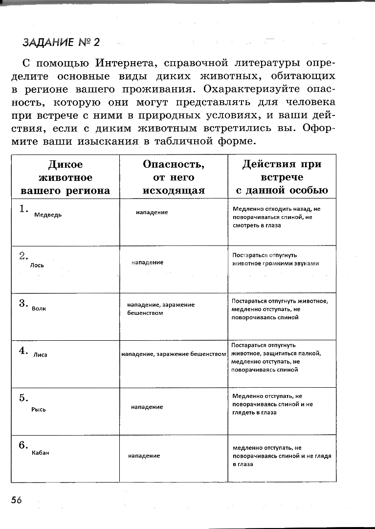 Решения домашних заданий по ОБЖ 6 класс Смирнов, Хренников, Маслов 56 упражнение