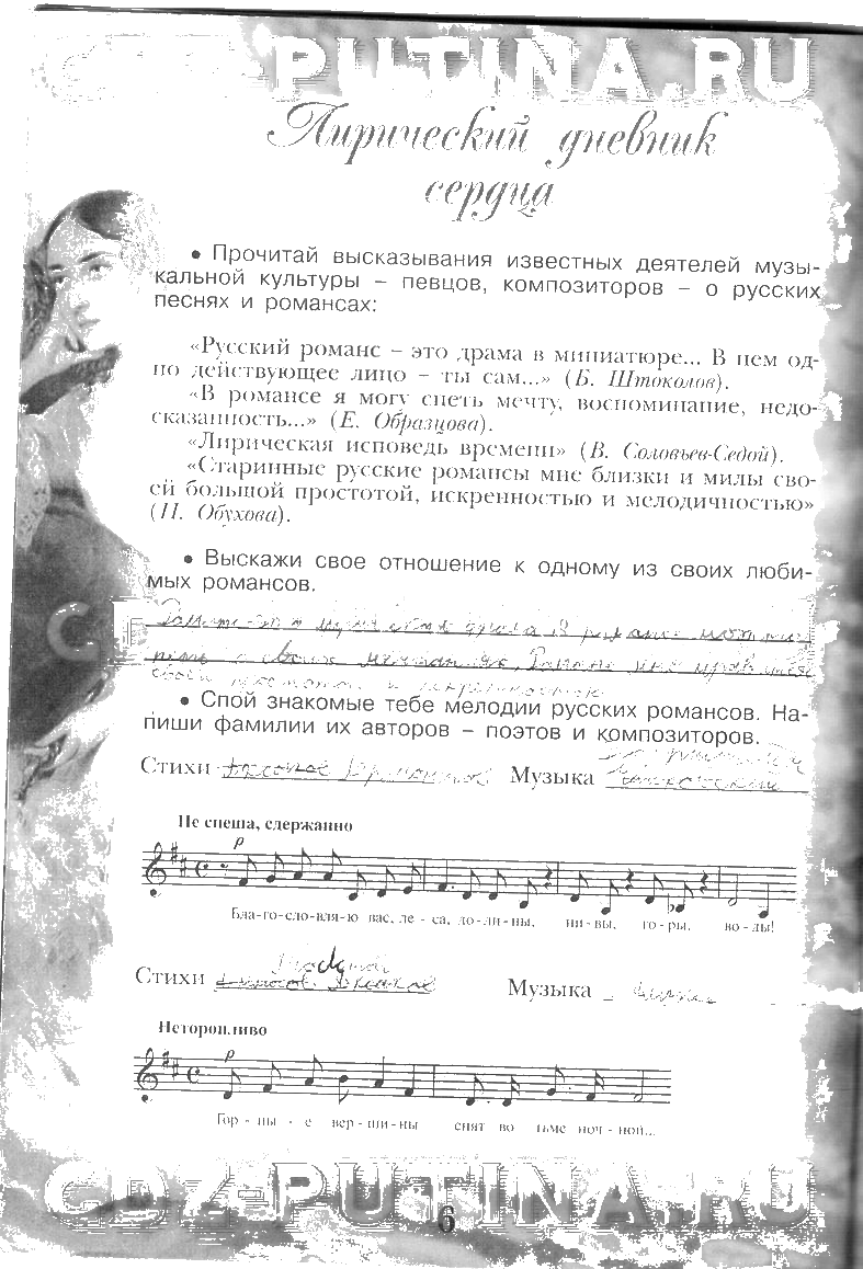 Решения домашних заданий по музыке 6 класс Сергеева, Критская 6 упражнение рабочая тетрадь