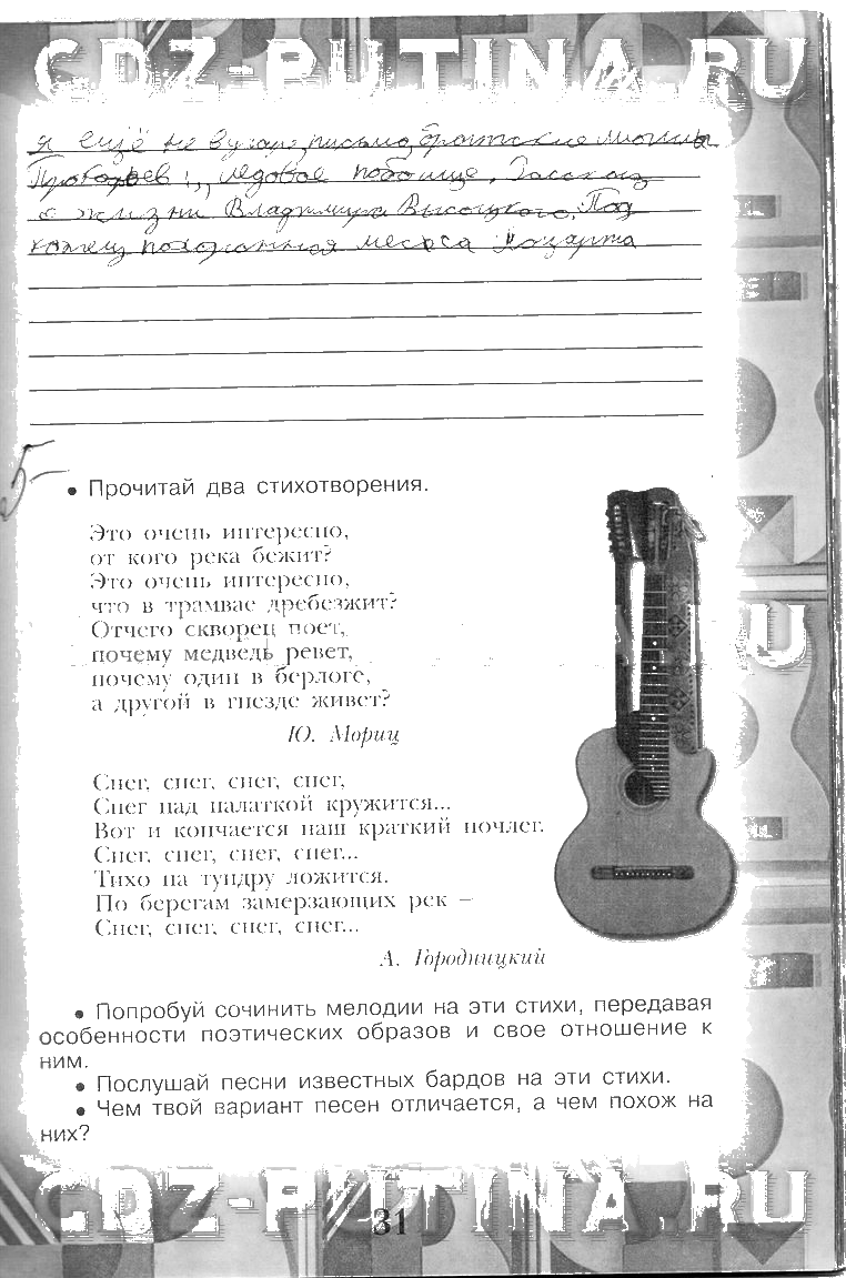 Решения домашних заданий по музыке 6 класс Сергеева, Критская 31 упражнение рабочая тетрадь