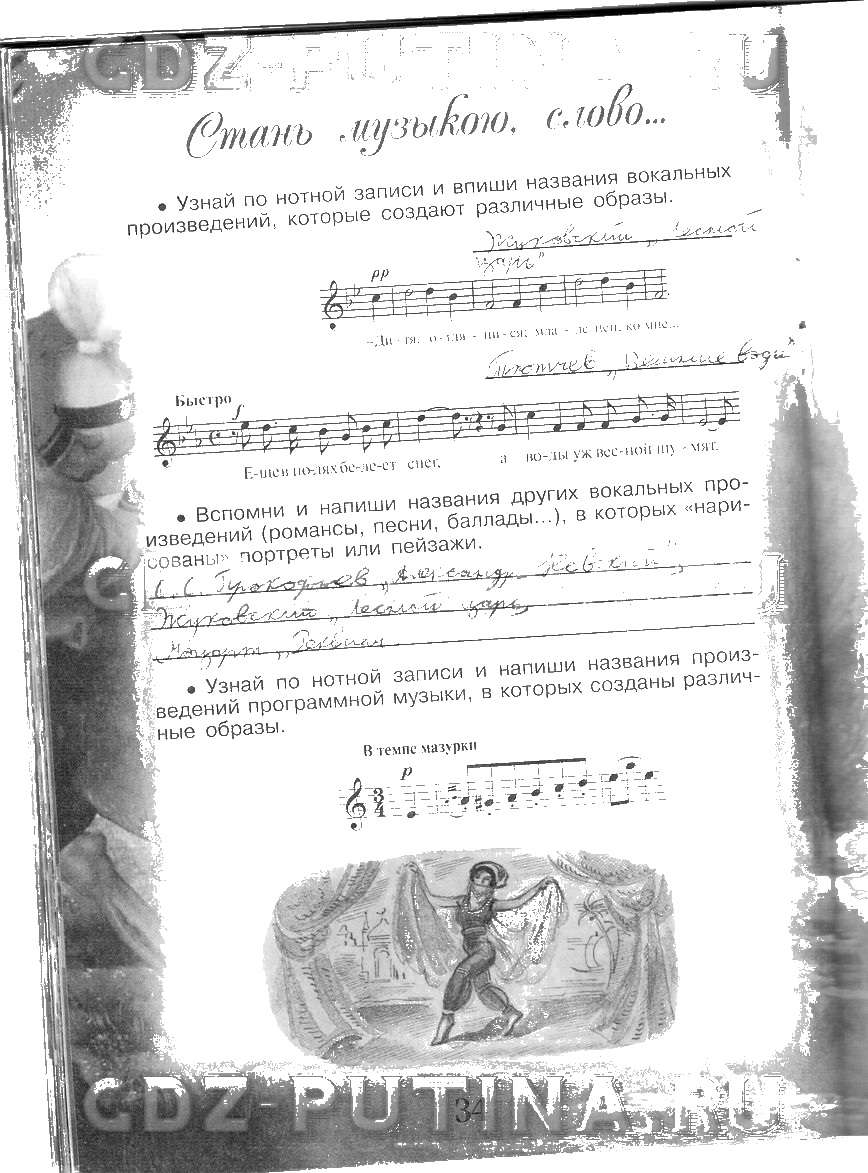 Решения домашних заданий по музыке 6 класс Сергеева, Критская 34 упражнение рабочая тетрадь