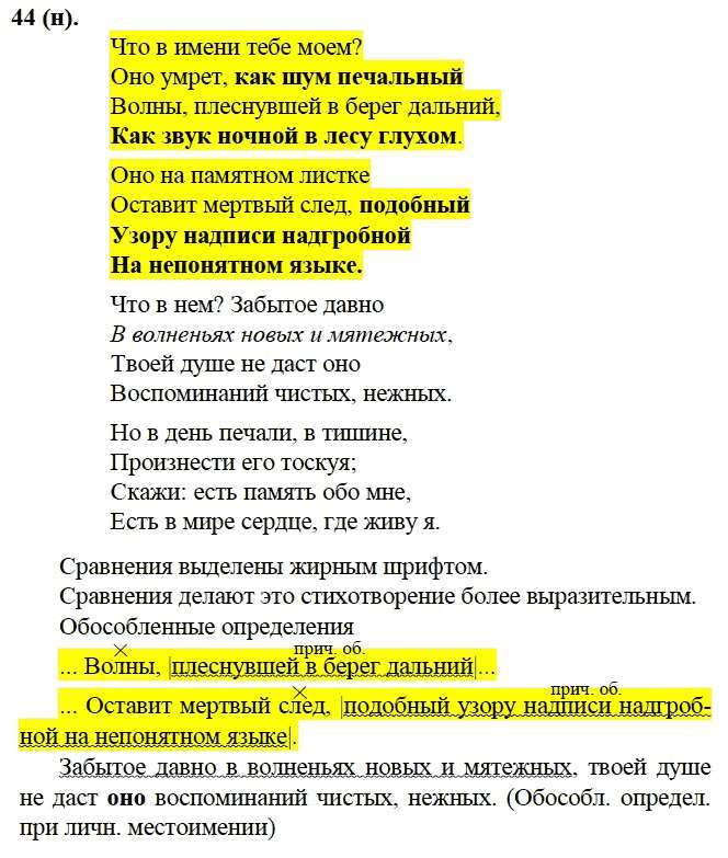 Решения домашних заданий по русскому языку 9 класс Бархударов С.Г., Крючков С.Е., Максимов Л.Ю., Чешко Л.А. 44(n) упражнение