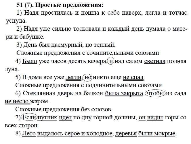 Решения домашних заданий по русскому языку 9 класс Бархударов С.Г., Крючков С.Е., Максимов Л.Ю., Чешко Л.А. 51(7) упражнение