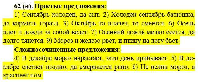 Решения домашних заданий по русскому языку 9 класс Бархударов С.Г., Крючков С.Е., Максимов Л.Ю., Чешко Л.А. 62(n) упражнение