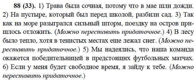 Решения домашних заданий по русскому языку 9 класс Бархударов С.Г., Крючков С.Е., Максимов Л.Ю., Чешко Л.А. 88(33) упражнение