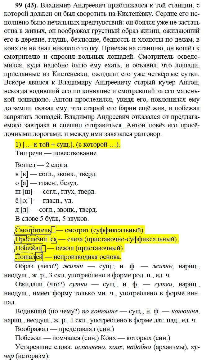 Решения домашних заданий по русскому языку 9 класс Бархударов С.Г., Крючков С.Е., Максимов Л.Ю., Чешко Л.А. 99(43) упражнение