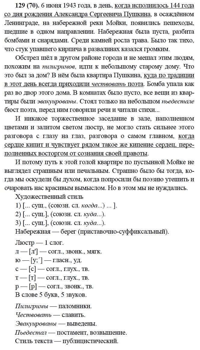 Решения домашних заданий по русскому языку 9 класс Бархударов С.Г., Крючков С.Е., Максимов Л.Ю., Чешко Л.А. 129(70) упражнение
