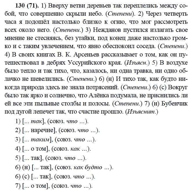 Решения домашних заданий по русскому языку 9 класс Бархударов С.Г., Крючков С.Е., Максимов Л.Ю., Чешко Л.А. 130(71) упражнение