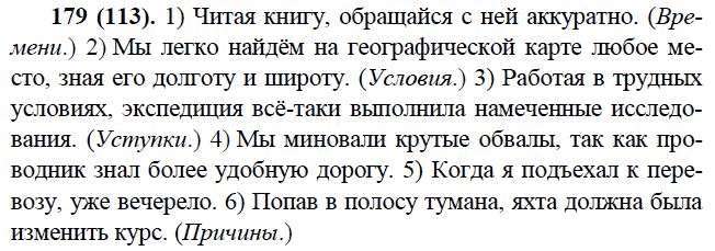 Решения домашних заданий по русскому языку 9 класс Бархударов С.Г., Крючков С.Е., Максимов Л.Ю., Чешко Л.А. 179(113) упражнение