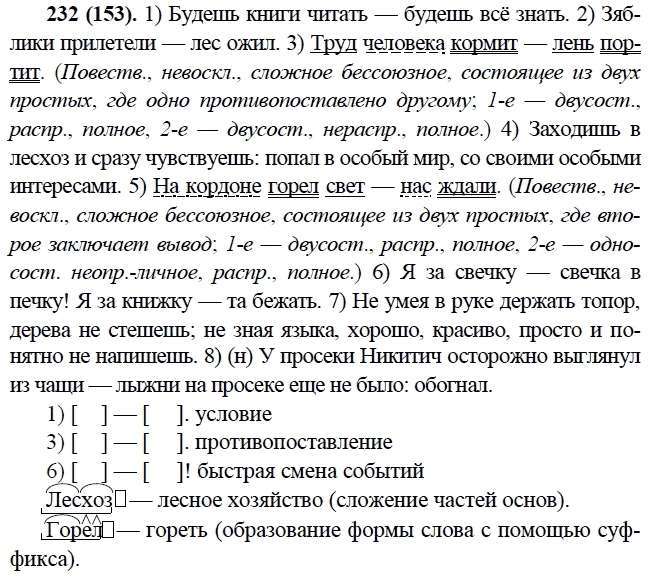 Решения домашних заданий по русскому языку 9 класс Бархударов С.Г., Крючков С.Е., Максимов Л.Ю., Чешко Л.А. 232(153) упражнение