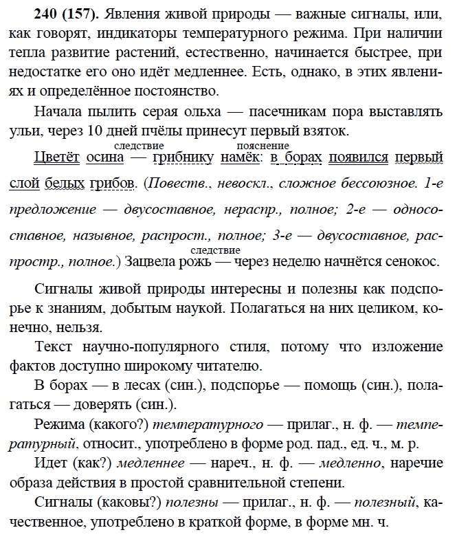 Решения домашних заданий по русскому языку 9 класс Бархударов С.Г., Крючков С.Е., Максимов Л.Ю., Чешко Л.А. 240(157) упражнение