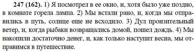 Решения домашних заданий по русскому языку 9 класс Бархударов С.Г., Крючков С.Е., Максимов Л.Ю., Чешко Л.А. 247(162) упражнение