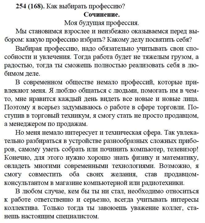 Решения домашних заданий по русскому языку 9 класс Бархударов С.Г., Крючков С.Е., Максимов Л.Ю., Чешко Л.А. 254(168) упражнение