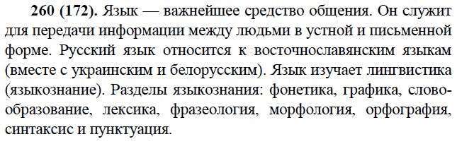 Решения домашних заданий по русскому языку 9 класс Бархударов С.Г., Крючков С.Е., Максимов Л.Ю., Чешко Л.А. 260(172) упражнение
