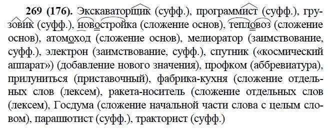 Решения домашних заданий по русскому языку 9 класс Бархударов С.Г., Крючков С.Е., Максимов Л.Ю., Чешко Л.А. 269(176) упражнение