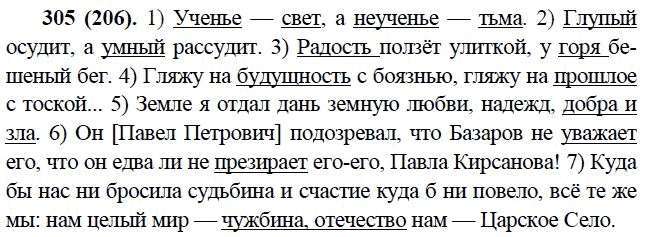 Решения домашних заданий по русскому языку 9 класс Бархударов С.Г., Крючков С.Е., Максимов Л.Ю., Чешко Л.А. 305(206) упражнение