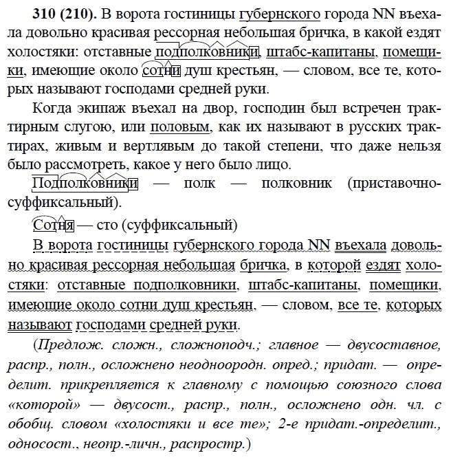 Решения домашних заданий по русскому языку 9 класс Бархударов С.Г., Крючков С.Е., Максимов Л.Ю., Чешко Л.А. 310(210) упражнение