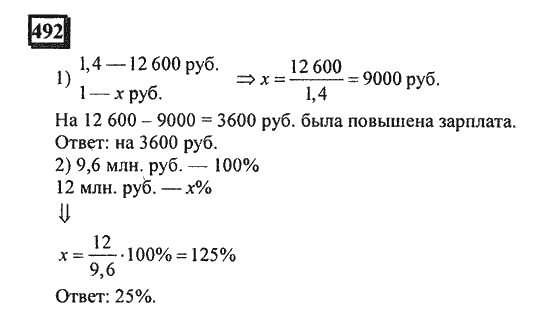 Решения домашних заданий по математике 6 класс Дорофеев Г.В., Петерсон Л.Г. 492 упражнение Часть 1
