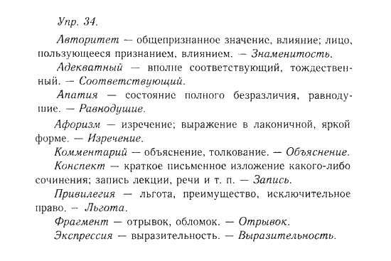 Решения домашних заданий по русскому языку 10, 11 класс Гольцова Н.Г., Шамшин И.В. 34 упражнение