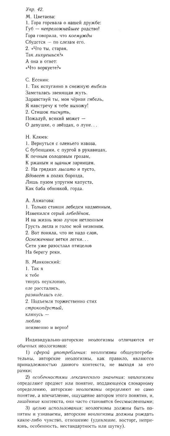 Решения домашних заданий по русскому языку 10, 11 класс Гольцова Н.Г., Шамшин И.В. 42 упражнение