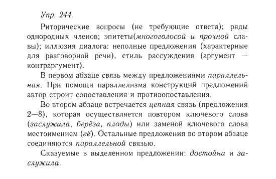 Решения домашних заданий по русскому языку 10, 11 класс Гольцова Н.Г., Шамшин И.В. 244 упражнение