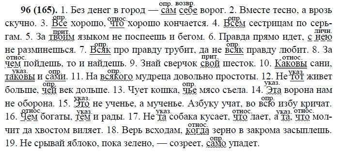 Решения домашних заданий по русскому языку 10, 11 класс Власенков А.И., Рыбченкова Л.М. 96(165) упражнение