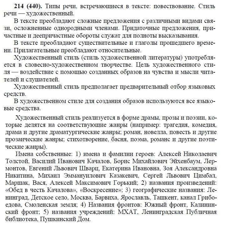 Решения домашних заданий по русскому языку 10, 11 класс Власенков А.И., Рыбченкова Л.М. 214(440) упражнение