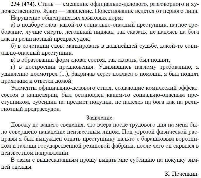 Решения домашних заданий по русскому языку 10, 11 класс Власенков А.И., Рыбченкова Л.М. 234(474) упражнение