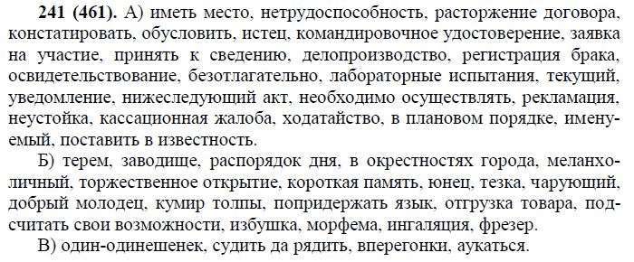 Решения домашних заданий по русскому языку 10, 11 класс Власенков А.И., Рыбченкова Л.М. 241(461) упражнение