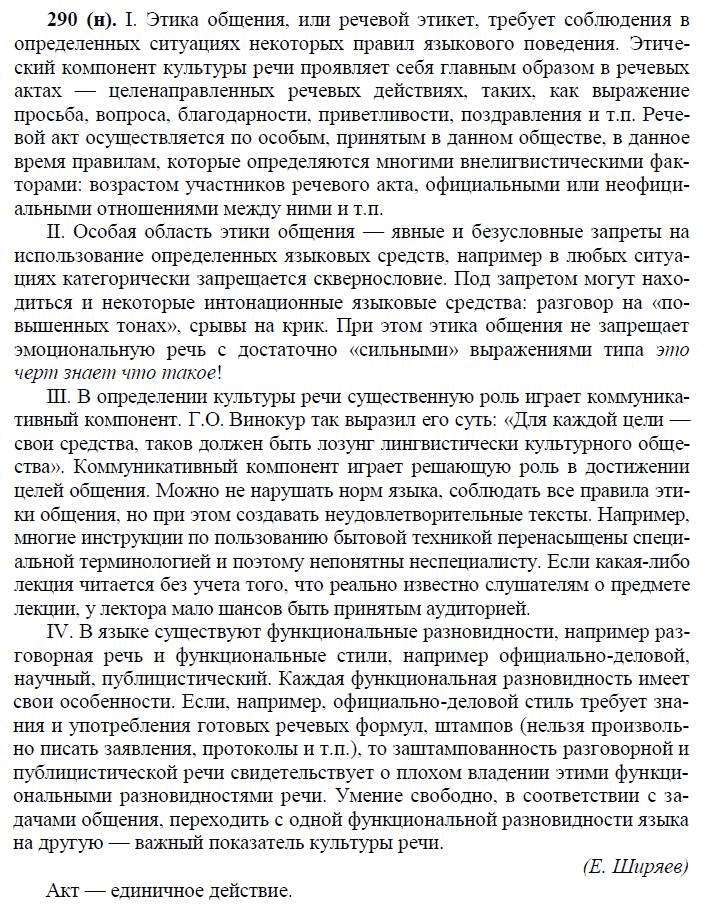 Решения домашних заданий по русскому языку 10, 11 класс Власенков А.И., Рыбченкова Л.М. 290(n) упражнение