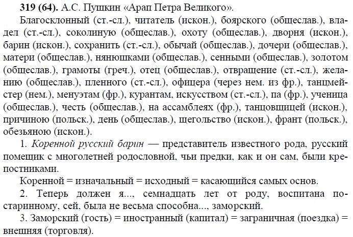 Решения домашних заданий по русскому языку 10, 11 класс Власенков А.И., Рыбченкова Л.М. 319(64) упражнение