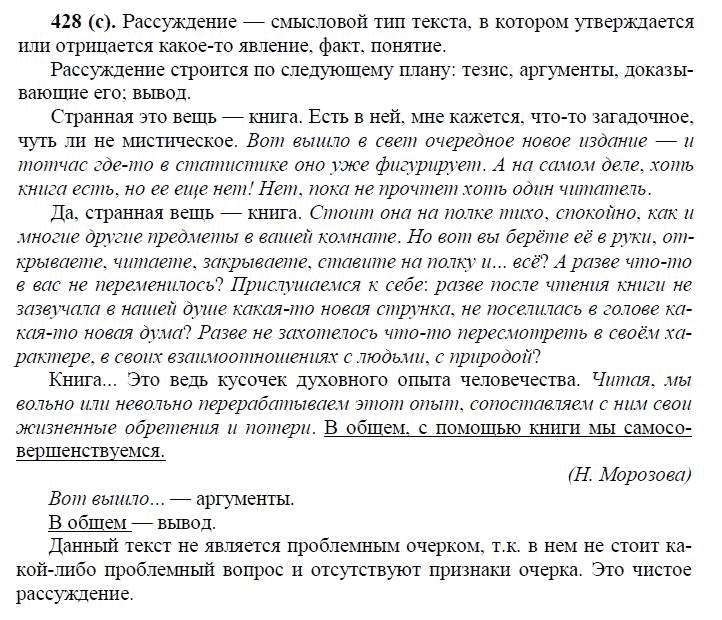 Решения домашних заданий по русскому языку 10, 11 класс Власенков А.И., Рыбченкова Л.М. 428(c) упражнение