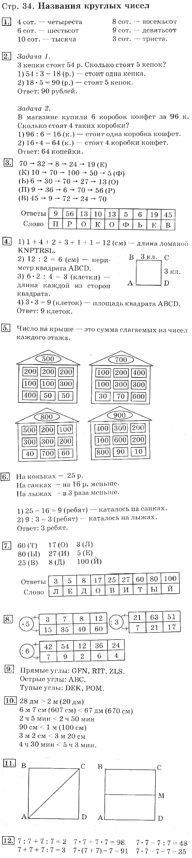 Решения домашних заданий по математике 3 класс Дорофеев, Миракова, Бука 34 упражнение