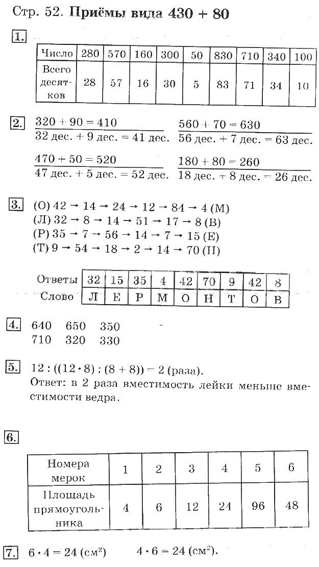 Решения домашних заданий по математике 3 класс Дорофеев, Миракова, Бука 52 упражнение