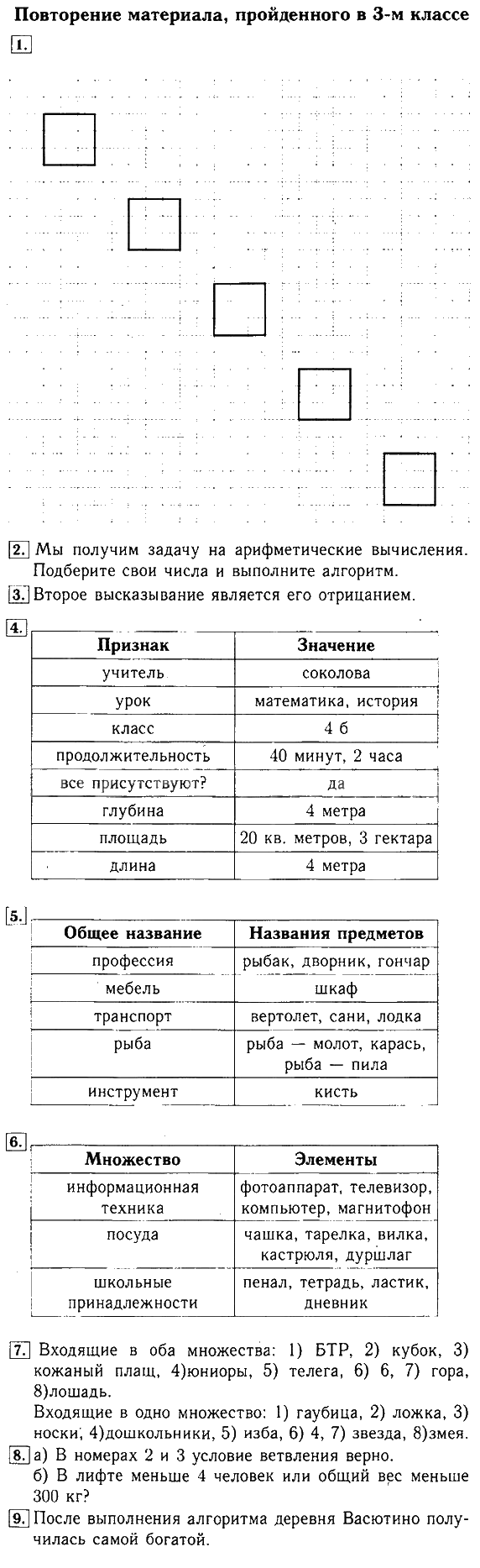 Решения домашних заданий по информатике 4 класс Горячев Повторение материала, пройденного в 3-м классе упражнение