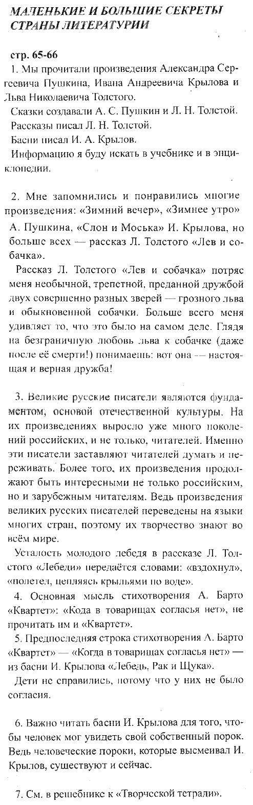 Решения домашних заданий по литературе 3 класс Климанова 65-66 упражнение