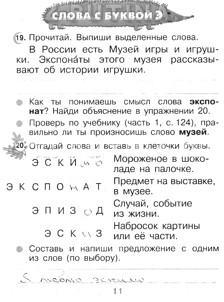 Решения домашних заданий по русскому языку 2 класс Рамзаева 11 упражнение