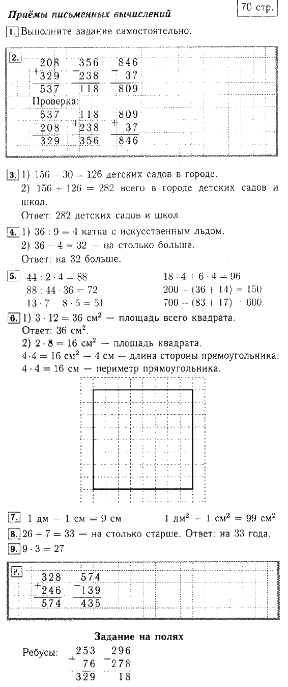 Решения домашних заданий по математике 3 класс Моро 70 упражнение